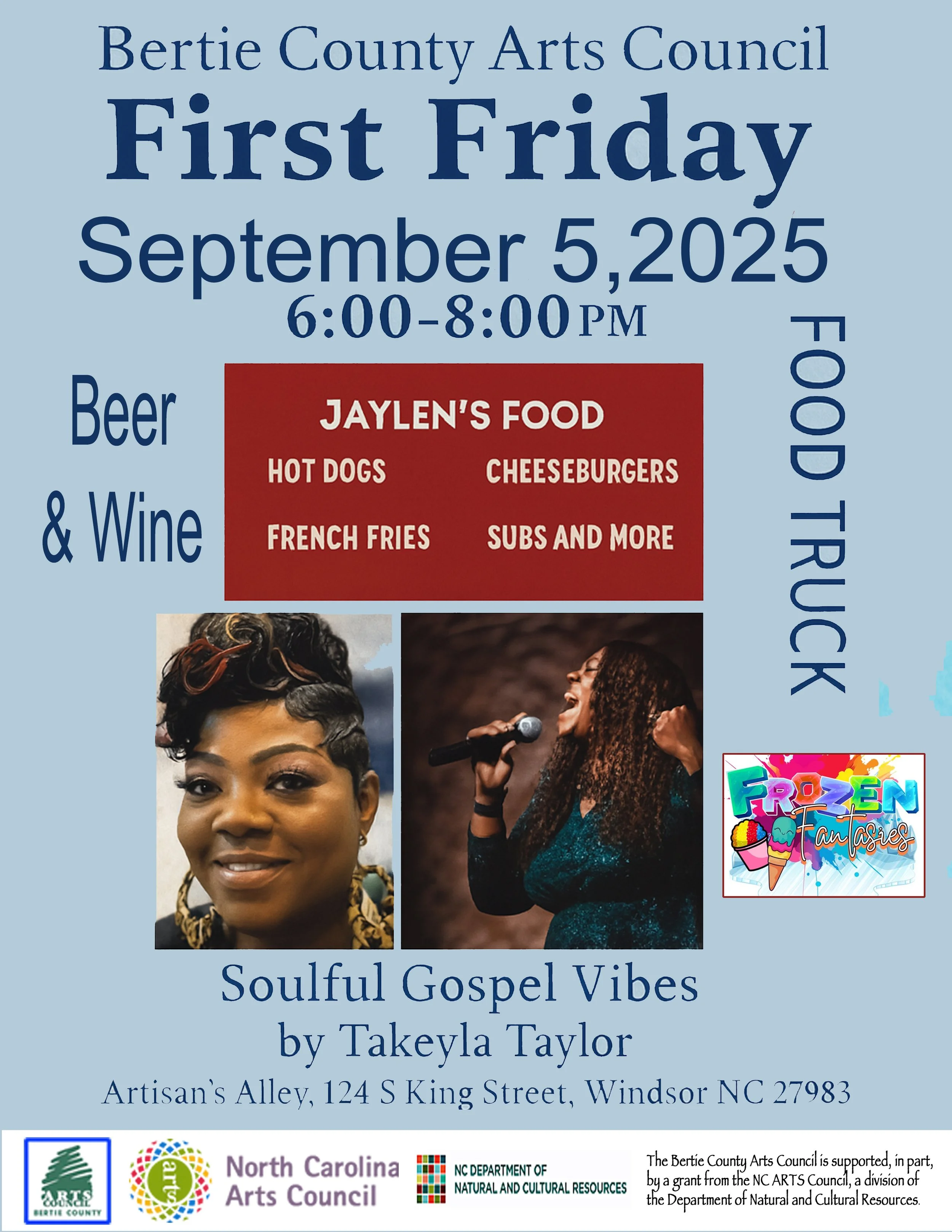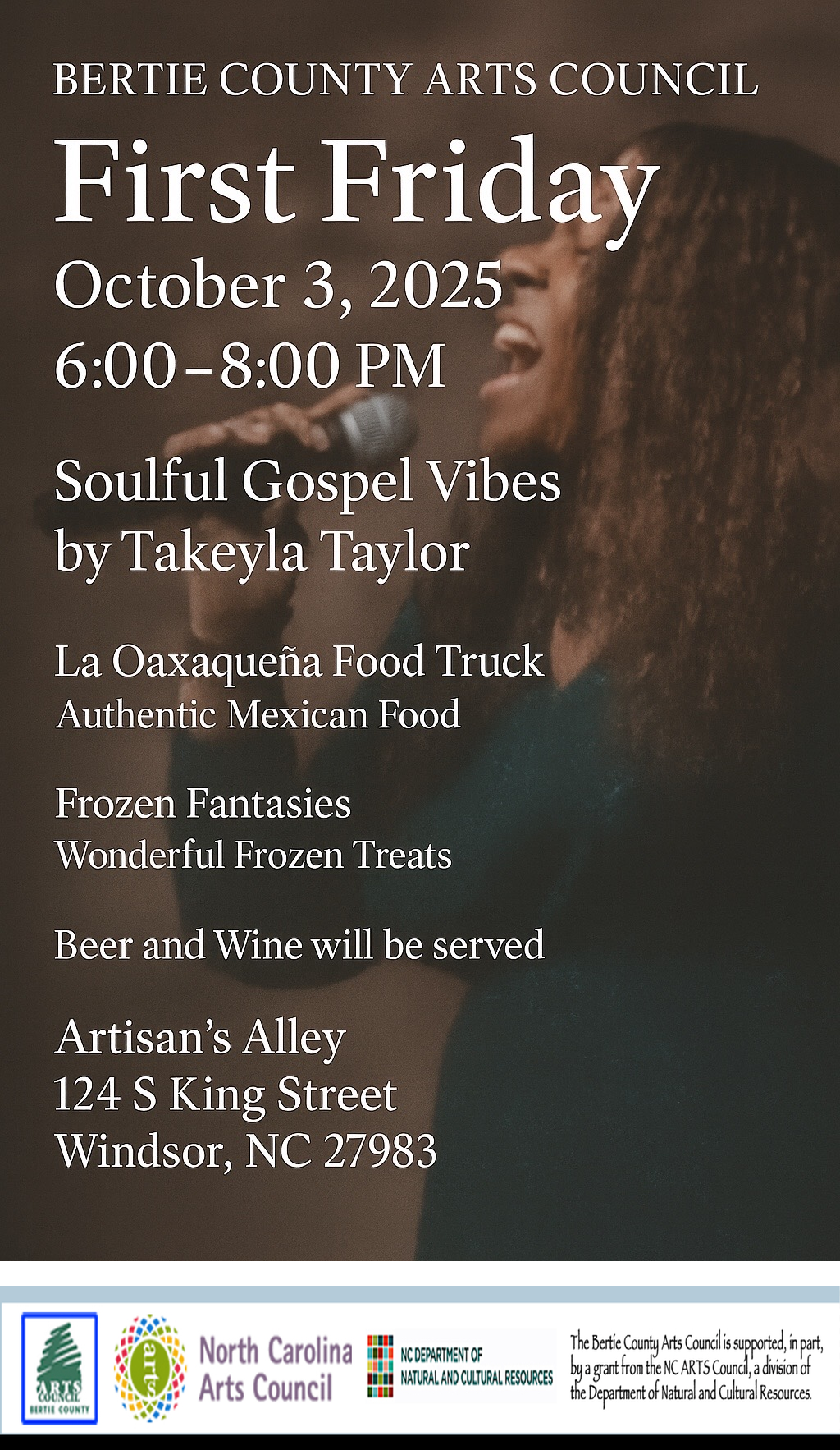 Location: Bertie County Arts Council 124 S King Street, Windsor, NC 27983